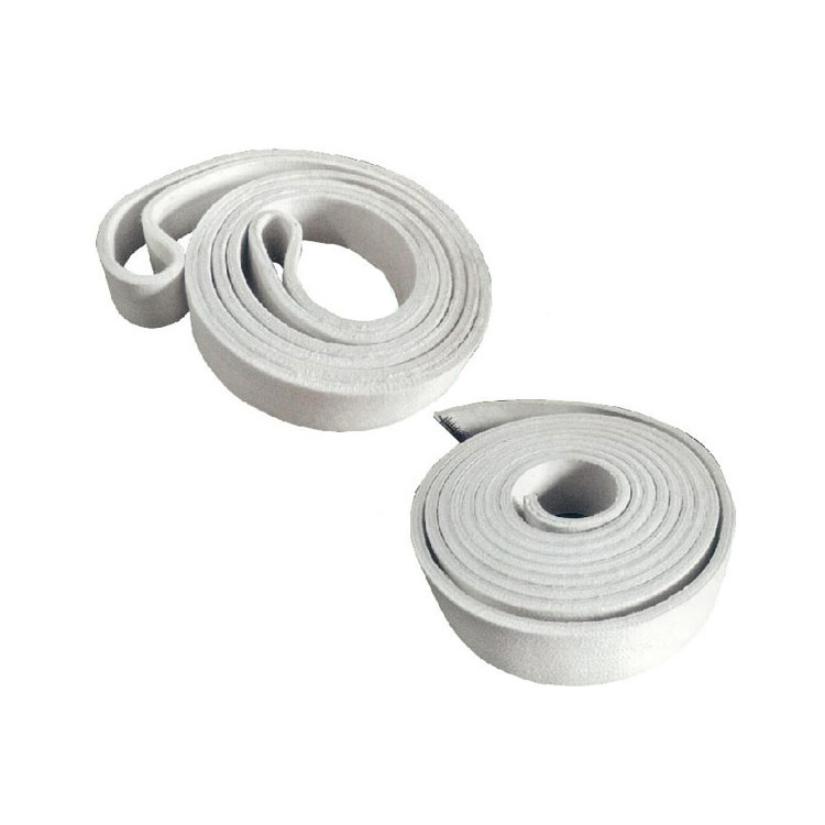 主要應用在(zài)小噸位的擠(jǐ)壓機(小(xiǎo)於(yú)800噸)匹(pǐ)配的二級(jí)冷床上(shàng),由(yóu)於小擠(jǐ)壓機的鋁材散熱快,它到達二級冷床時的溫度(dù)已降至180℃以下,所以沒必要采用較貴的間位芳綸皮帶而選用更便宜的PE無縫帶貼(tiē)合帶。本公司提供的這種貼心(xīn)服務(wù)為用戶節約了很大的損耗開支。